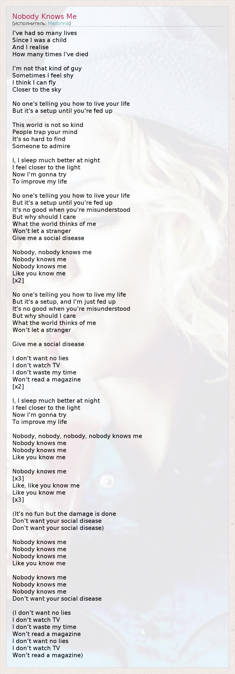 А как ты думаешь, о чем песня "Nobody Knows Me" ?