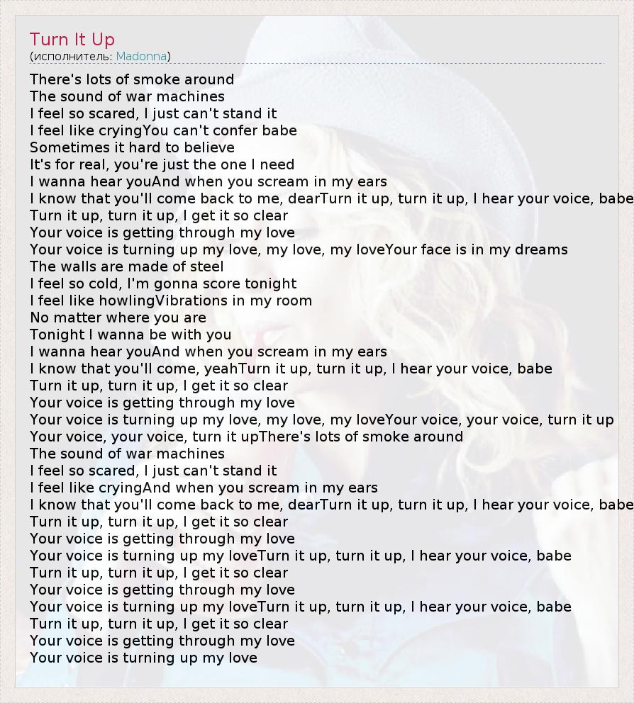 А как ты думаешь, о чем песня "Turn It Up" ?