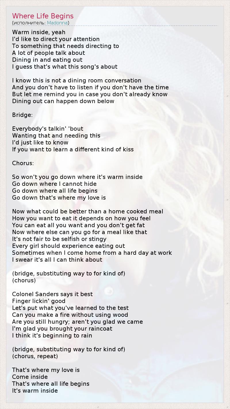 А как ты думаешь, о чем песня "Where Life Begins" ?