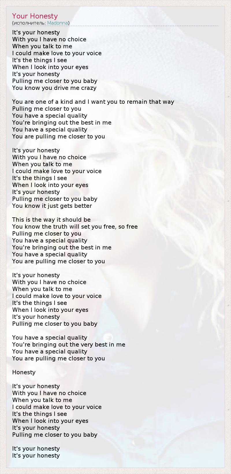 А как ты думаешь, о чем песня "Your Honesty" ?