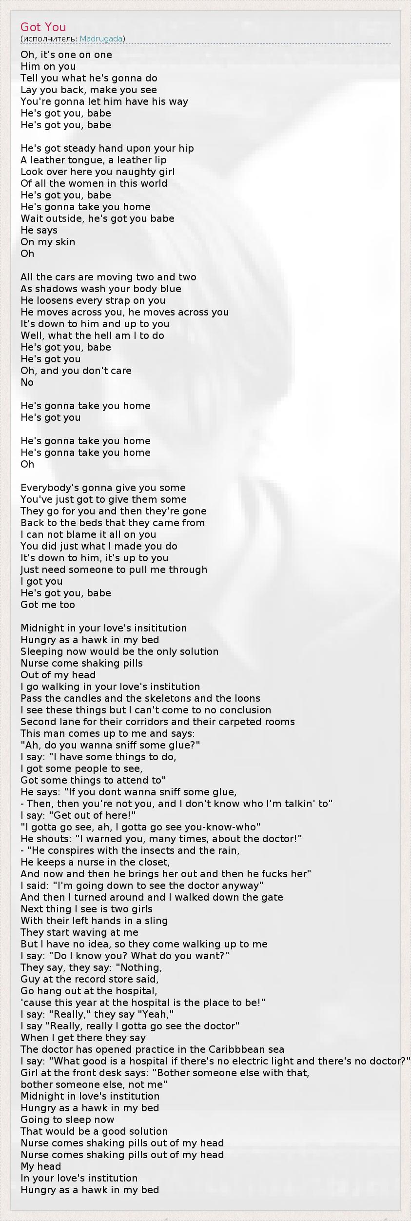 А как ты думаешь, о чем песня "Got You" ?