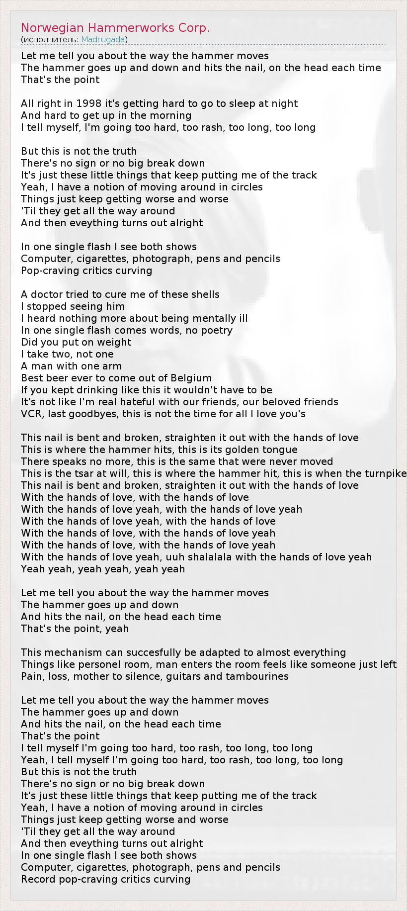 А как ты думаешь, о чем песня "Norwegian Hammerworks Corp." ?