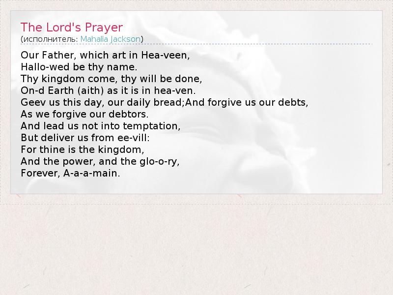 А как ты думаешь, о чем песня "The Lord's Prayer" ?