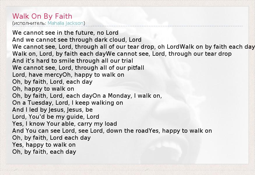 А как ты думаешь, о чем песня "Walk On By Faith" ?