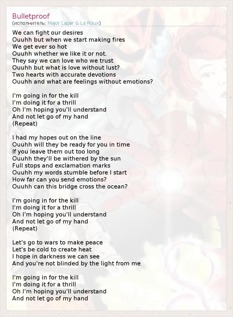 А как ты думаешь, о чем песня "Bulletproof" ?