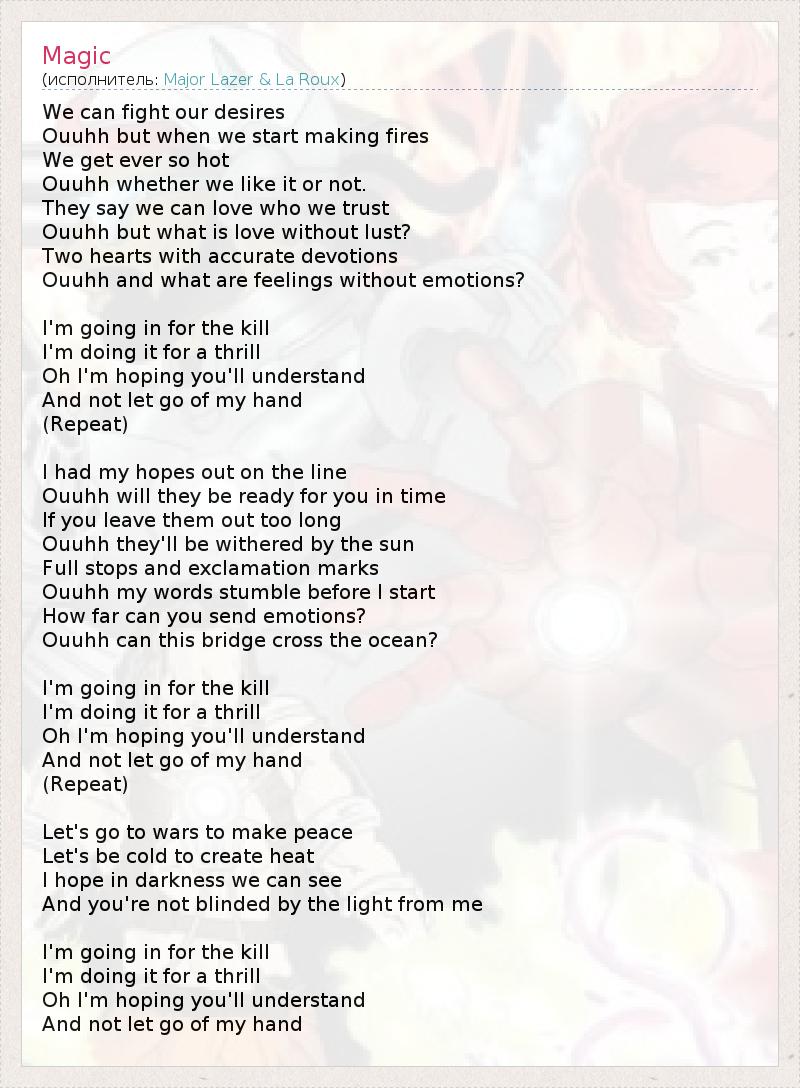 А как ты думаешь, о чем песня "Magic" ?