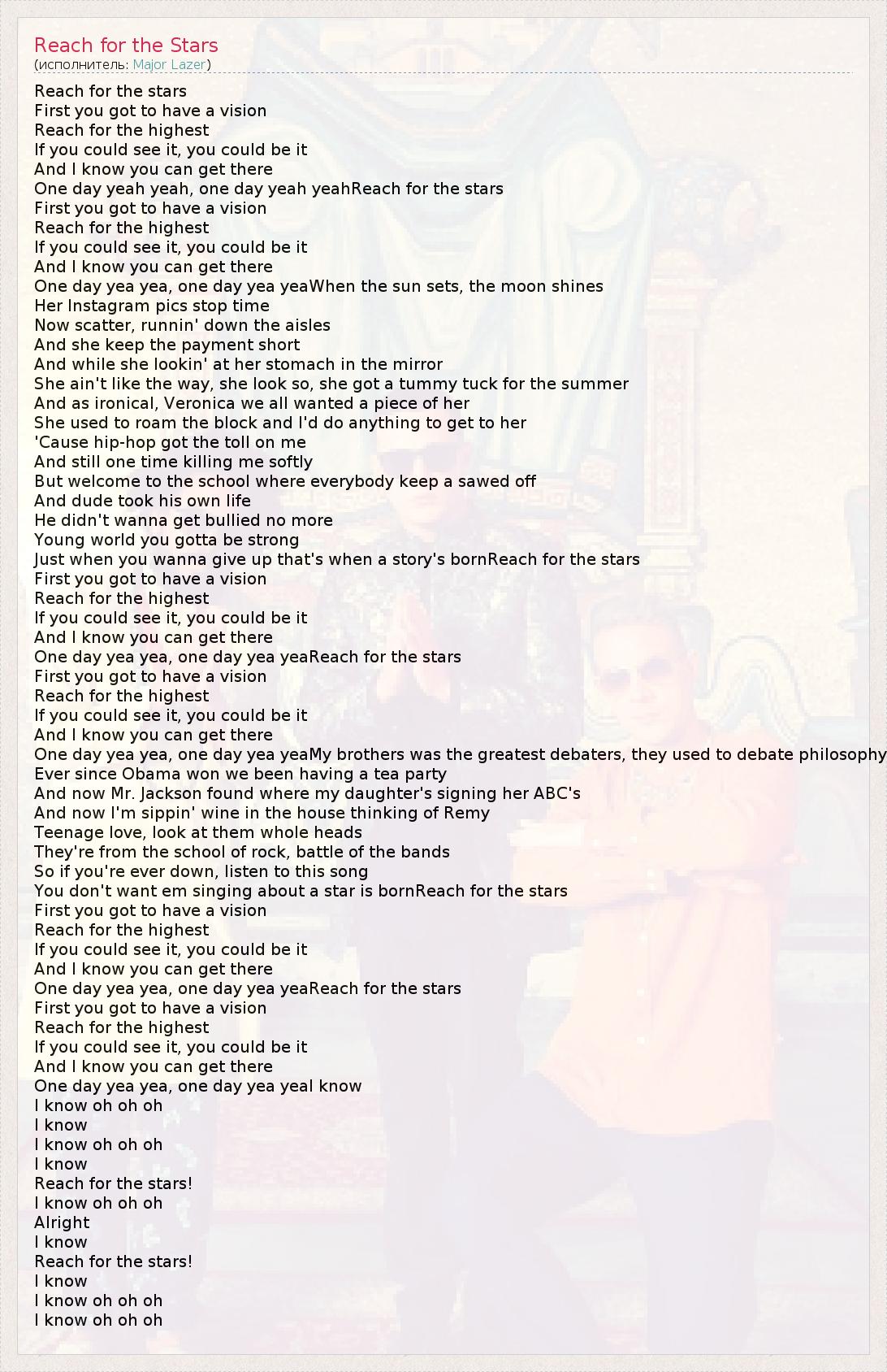 А как ты думаешь, о чем песня "Reach for the Stars" ?