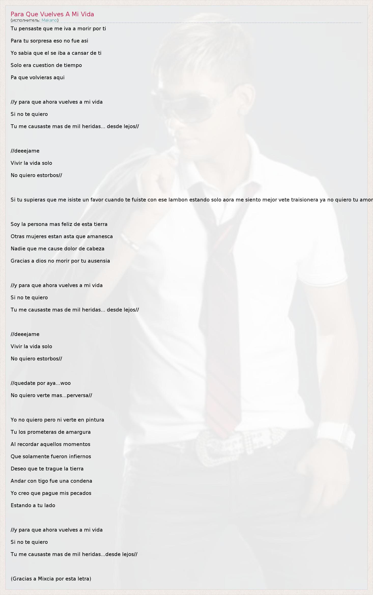ГлавнаяИсполнителиMakanoPara Que Vuelves A Mi Vida