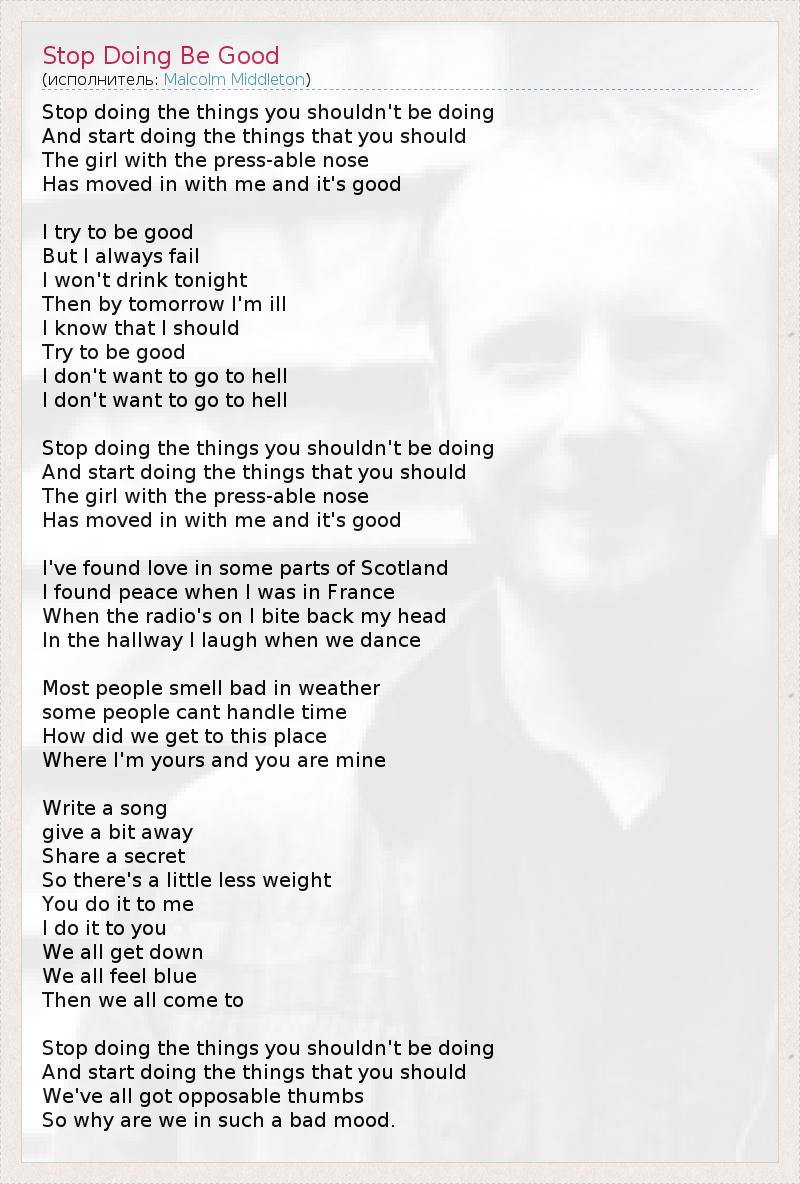А как ты думаешь, о чем песня "Stop Doing Be Good" ?