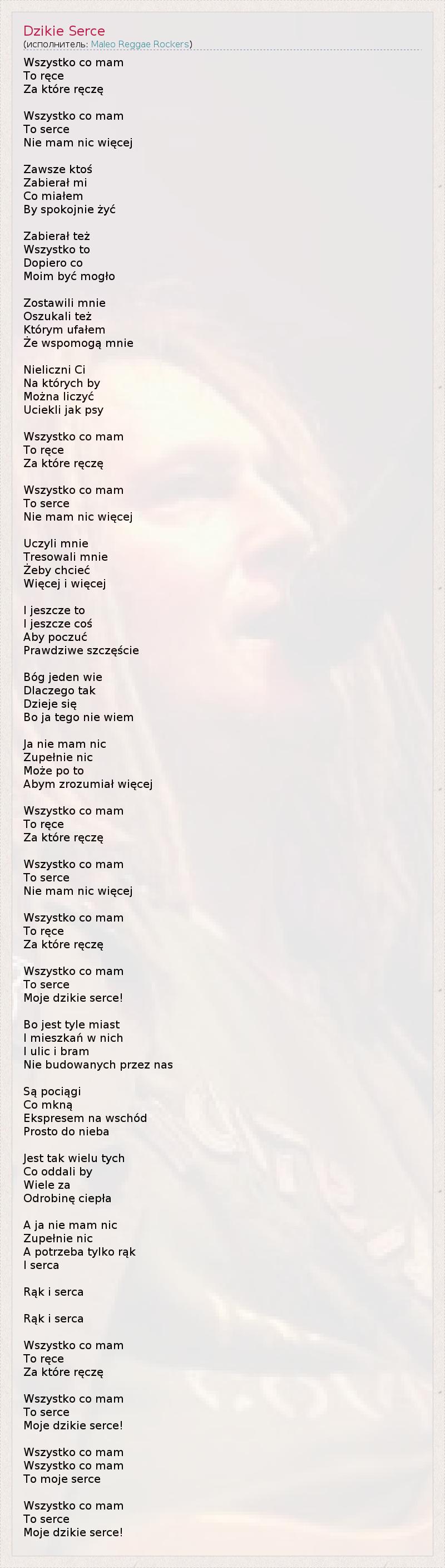 А как ты думаешь, о чем песня "Dzikie Serce" ?