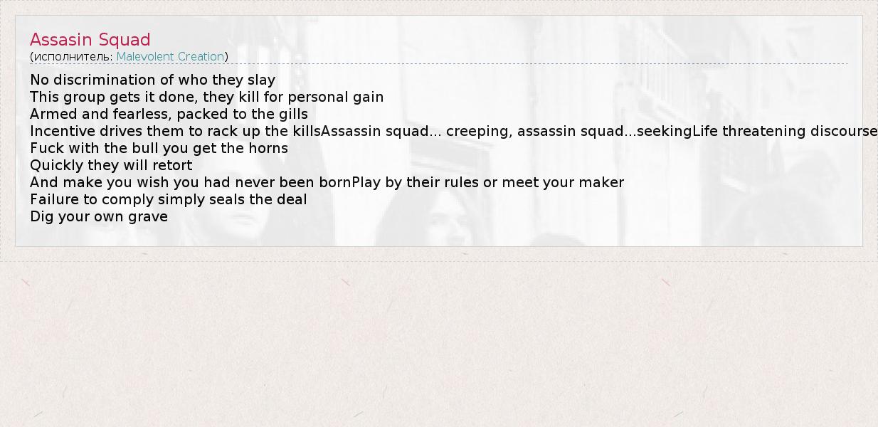 А как ты думаешь, о чем песня "Assasin Squad" ?