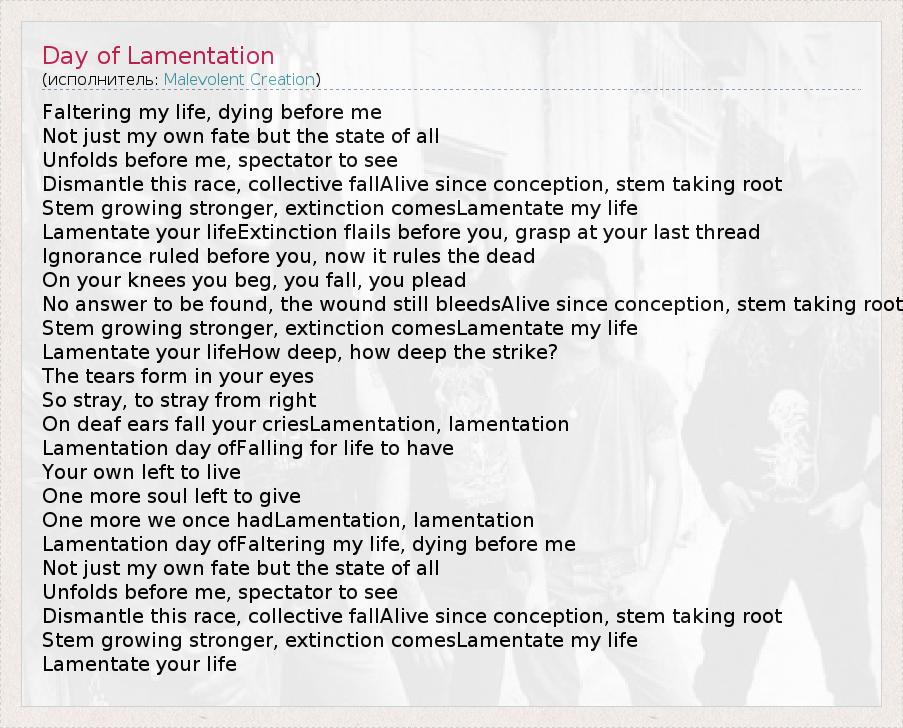 А как ты думаешь, о чем песня "Day of Lamentation" ?