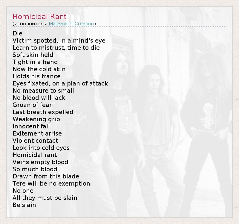 А как ты думаешь, о чем песня "Homicidal Rant" ?