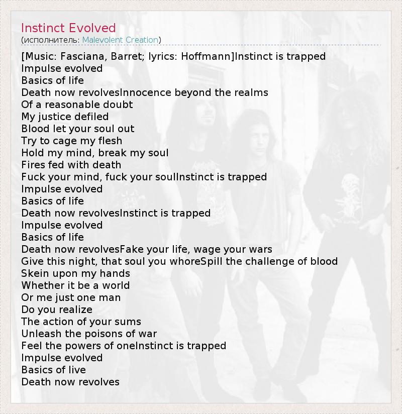 А как ты думаешь, о чем песня "Instinct Evolved" ?