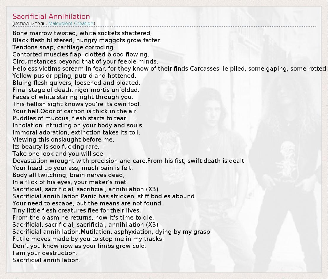 А как ты думаешь, о чем песня "Sacrificial Annihilation" ?