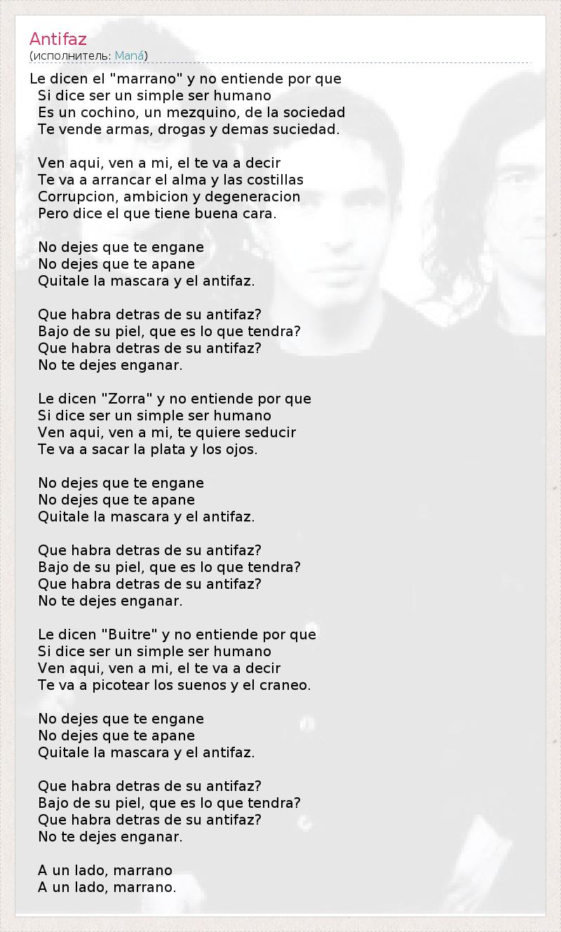 Это интересно:Maná - это популярная мексиканская поп-рок группа. Продано более 22 миллионов копий альбомов группы. Награды: Грэмми, пять Латинских Грэмми, пять MTV Video Music Awards Latin America, три Premios Juventud awards, пять Billboard Latin Music Awards и 12 Premios Lo Nuestro awards. Одна из самых популярных рок-групп Латинской Америки.