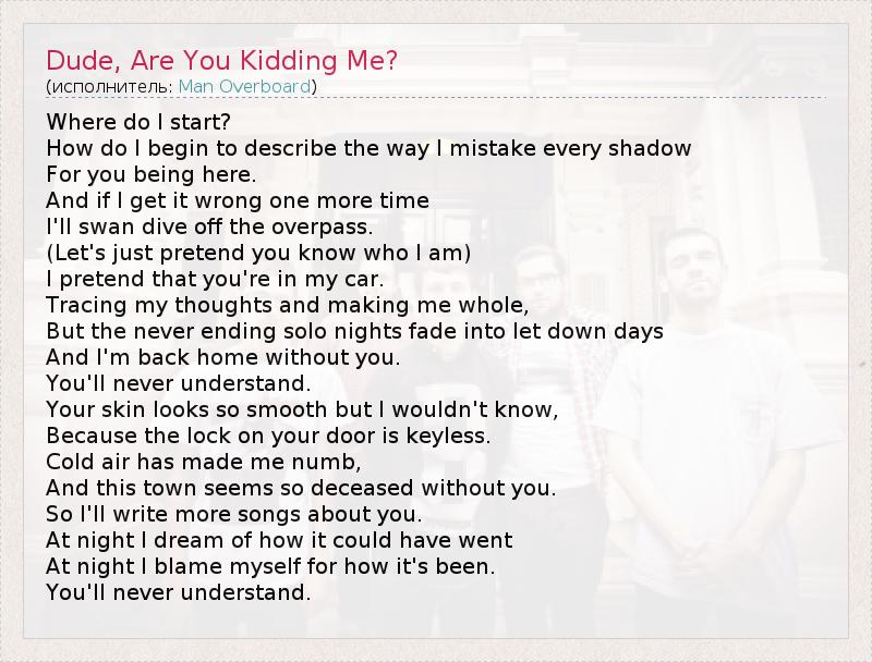 А как ты думаешь, о чем песня "Dude, Are You Kidding Me?" ?