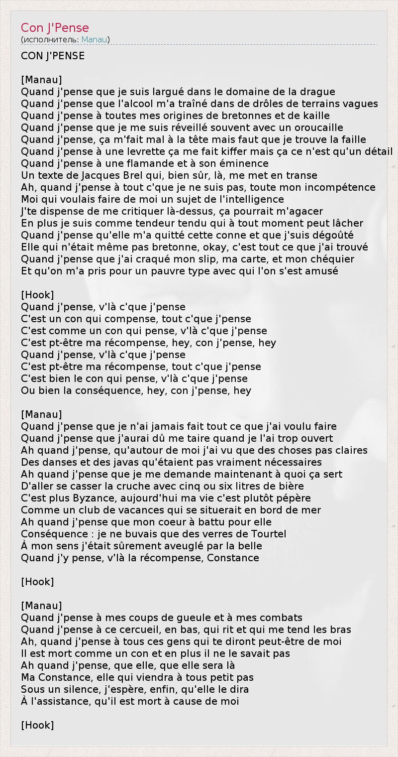 C'est comme un con qui pense, v'là c'que j'pense
