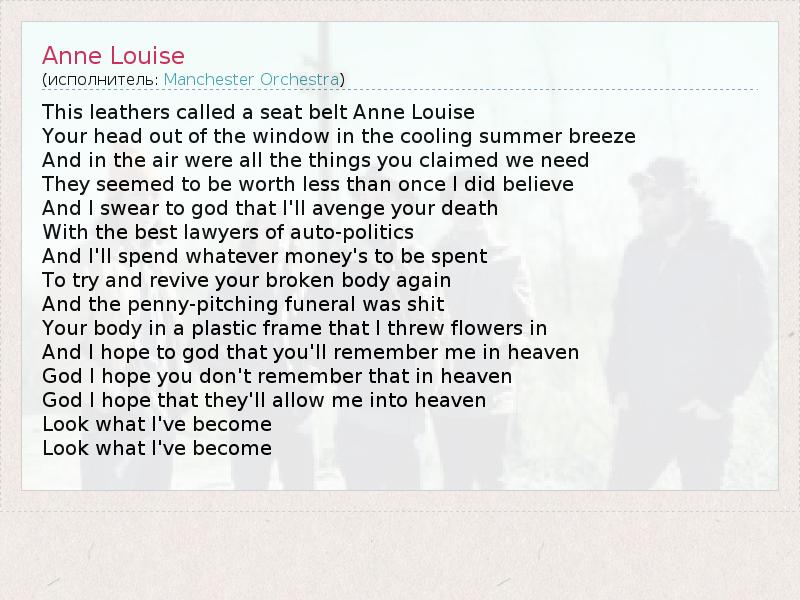 А как ты думаешь, о чем песня "Anne Louise" ?