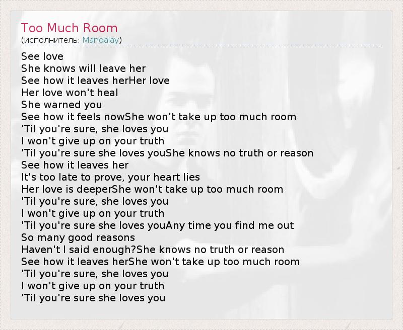 А как ты думаешь, о чем песня "Too Much Room" ?
