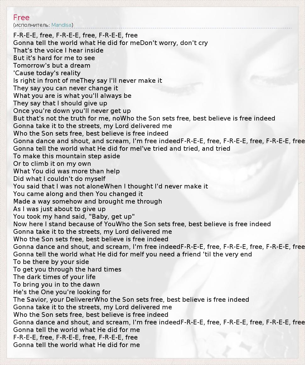 А как ты думаешь, о чем песня "Free" ?