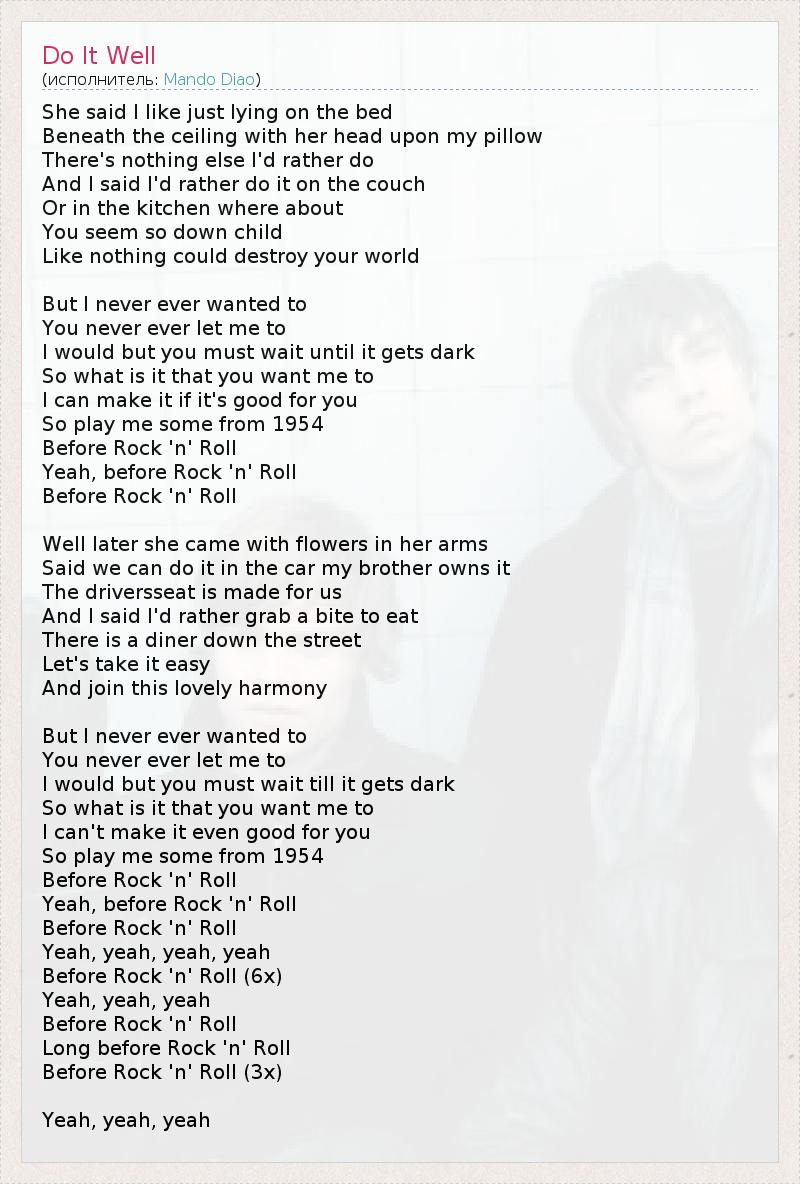 Это интересно:Mando Diao — шведская рок-группа, основанная в 1999-м году.В середине 1990-х Бьорн Диксгэрд и первый клавишник Mando Diao Даниэль Хаглунд основывают свою первую группу, которая вначале называется Butler, а в 1999 году переименовывается в Mando Diao. В 2004 году клавишник покинул группу из-за небольших недопониманий и вакантную позицию занимает Матс Бьорке. Название группы, по словам самих музыкантов,... продолжение