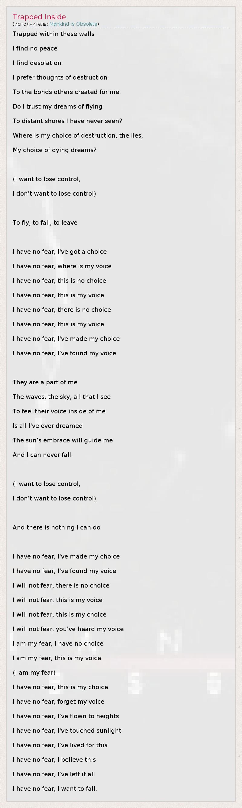 А как ты думаешь, о чем песня "Trapped Inside" ?