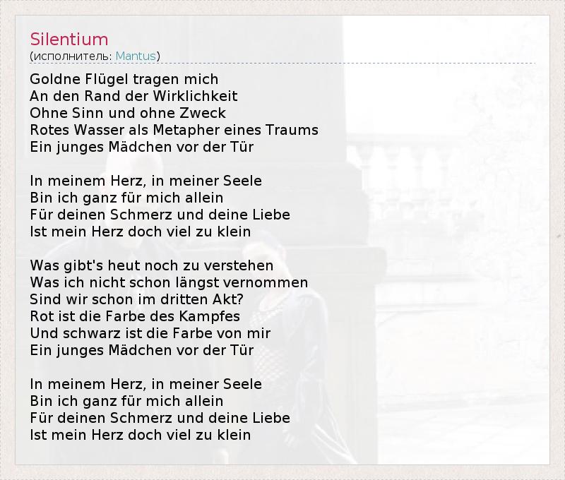 Это интересно:Mantus - это немецкий дуэт, возглавляет который Martin Schindler. Творчество группы скрывает в себе философию ''романтического нигилизма'' - это значит, что вокруг нас, над нами и вне нашей досягаемости ничего нет и не может существовать. Но в нас и благодаря нашей духовной энергии в нашем мире царят представление о жизни, воля к жизни и власть действительного бытия, которое только через... продолжение