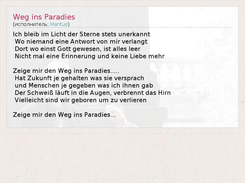 А как ты думаешь, о чем песня "Weg ins Paradies" ?