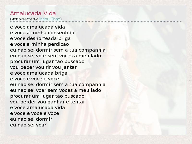 А как ты думаешь, о чем песня "Amalucada Vida" ?