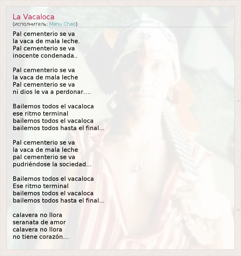 А как ты думаешь, о чем песня "La Vacaloca" ?