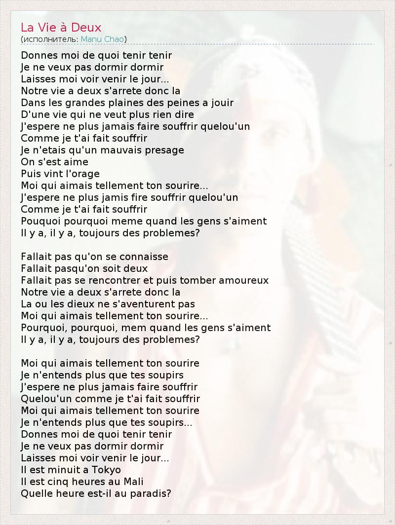 А как ты думаешь, о чем песня "La Vie à Deux" ?