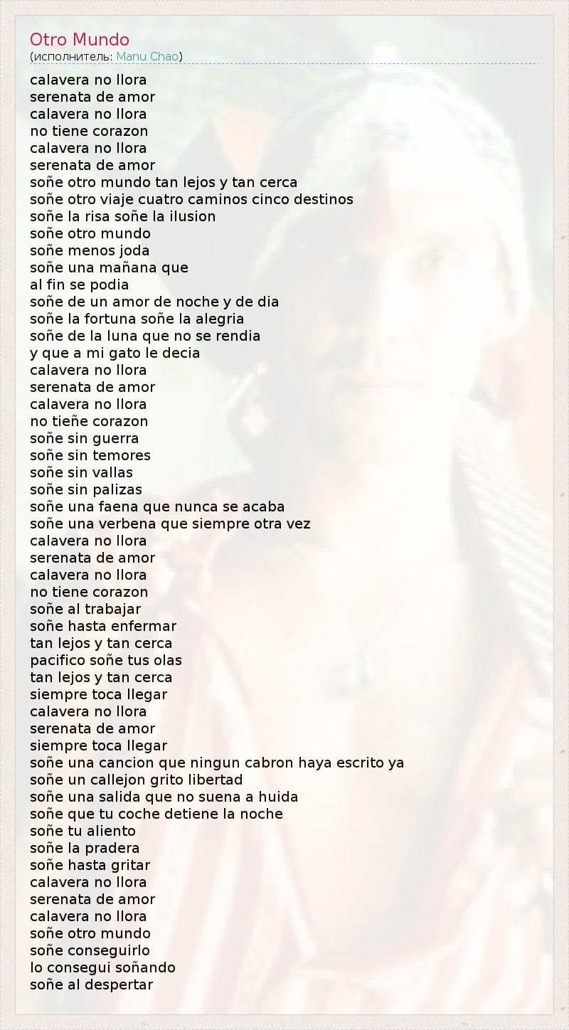 А как ты думаешь, о чем песня "Otro Mundo" ?