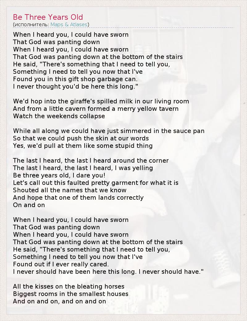 А как ты думаешь, о чем песня "Be Three Years Old" ?