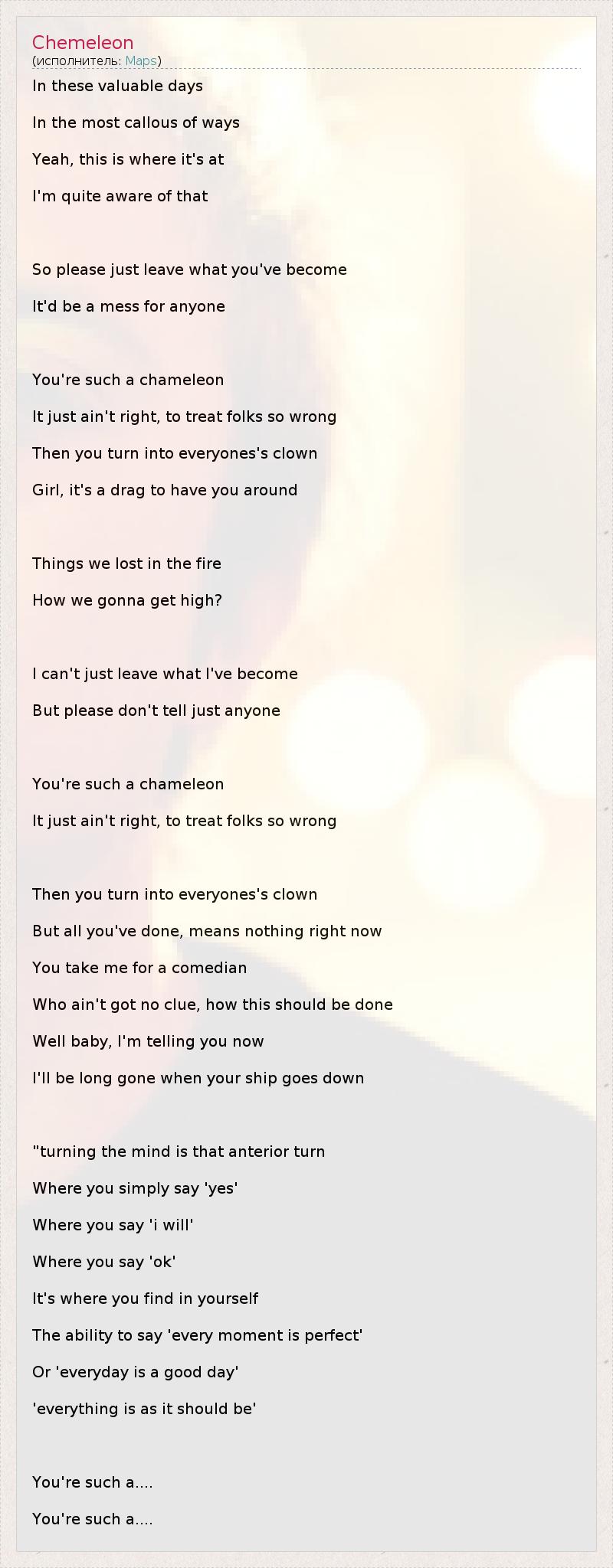 А как ты думаешь, о чем песня "Chemeleon" ?