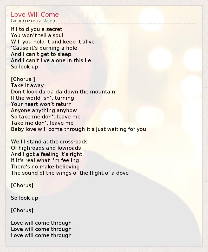 А как ты думаешь, о чем песня "Love Will Come" ?