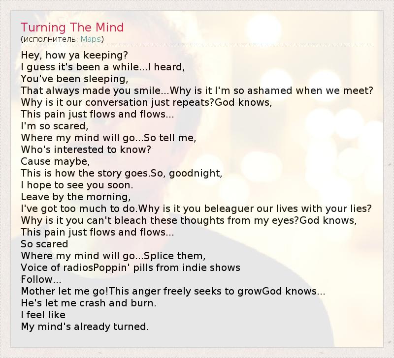 А как ты думаешь, о чем песня "Turning The Mind" ?