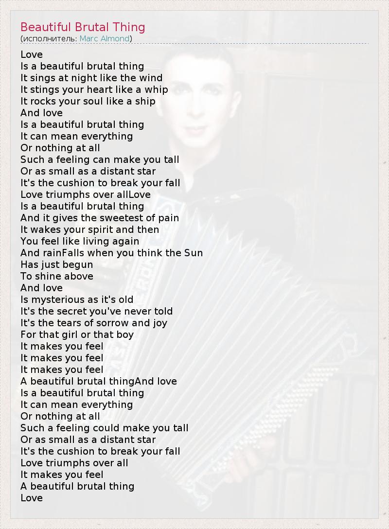 А как ты думаешь, о чем песня "Beautiful Brutal Thing" ?