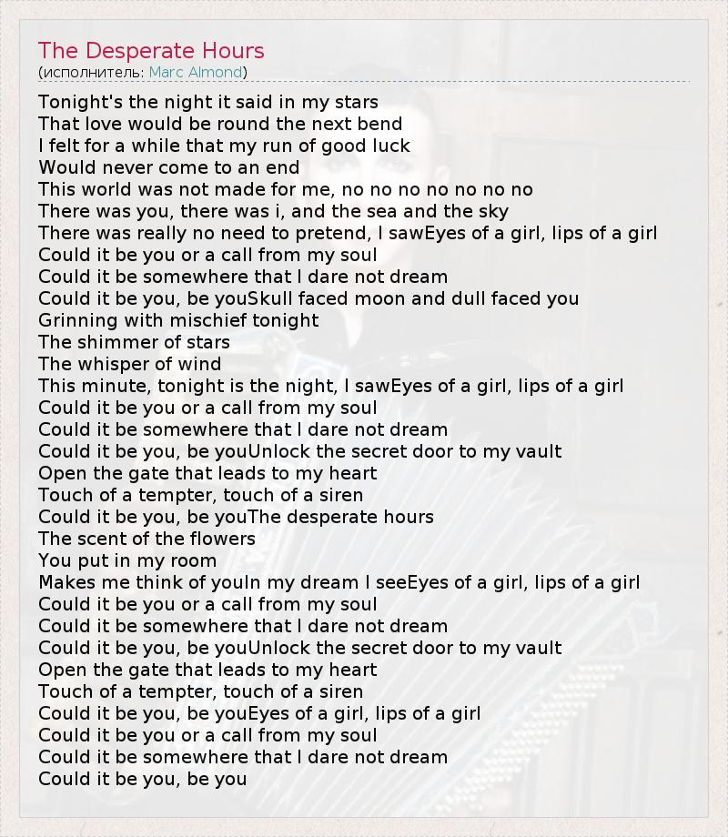 А как ты думаешь, о чем песня "The Desperate Hours" ?