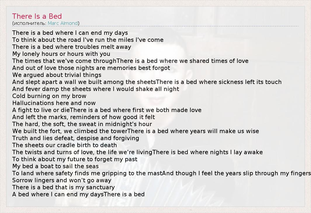 А как ты думаешь, о чем песня "There Is a Bed" ?