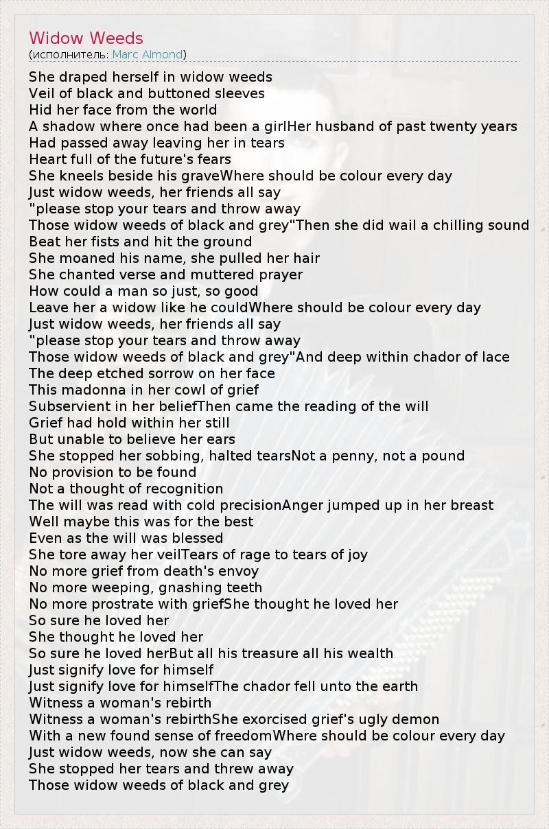 А как ты думаешь, о чем песня "Widow Weeds" ?