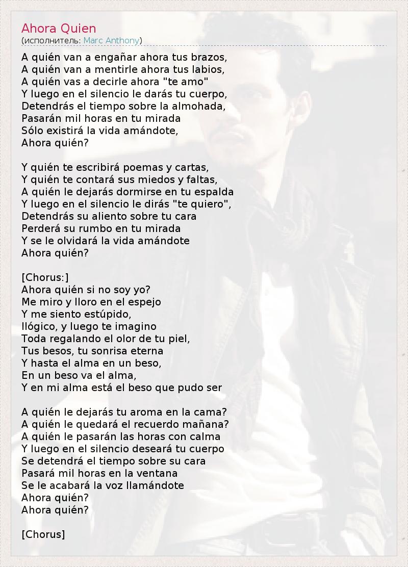 А как ты думаешь, о чем песня "Ahora Quien" ?