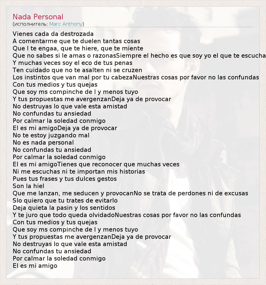 А как ты думаешь, о чем песня "Nada Personal" ?