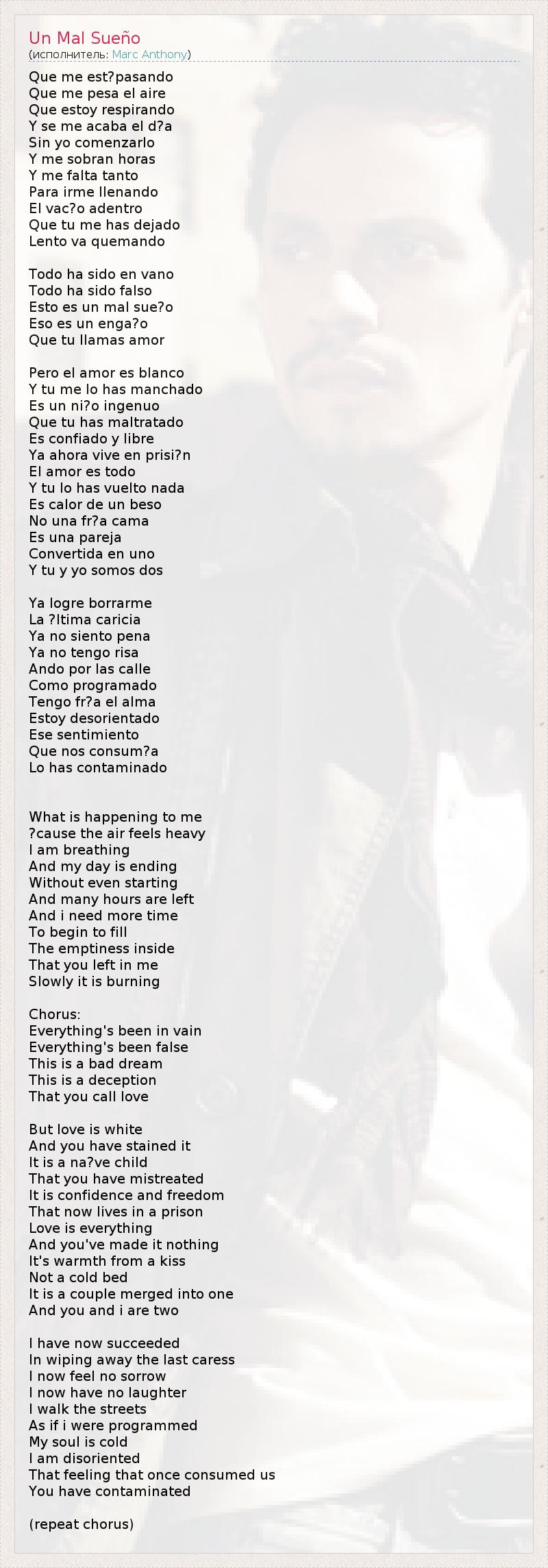 А как ты думаешь, о чем песня "Un Mal Sueño" ?