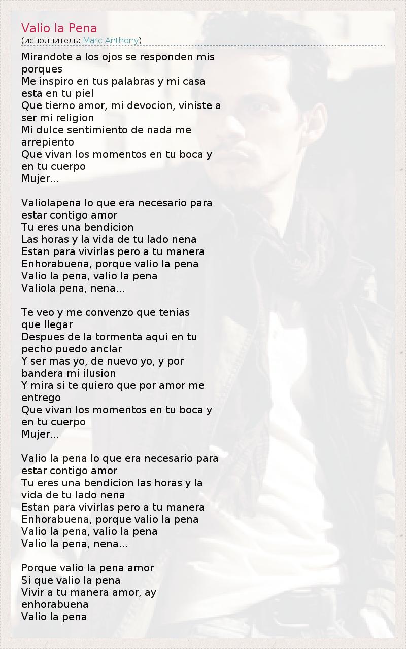 А как ты думаешь, о чем песня "Valio la Pena" ?