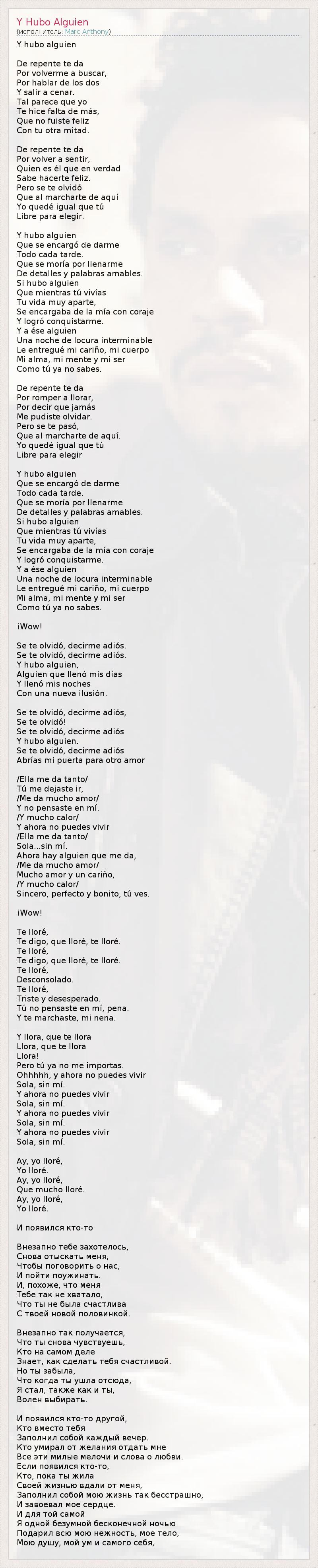А как ты думаешь, о чем песня "Y Hubo Alguien" ?