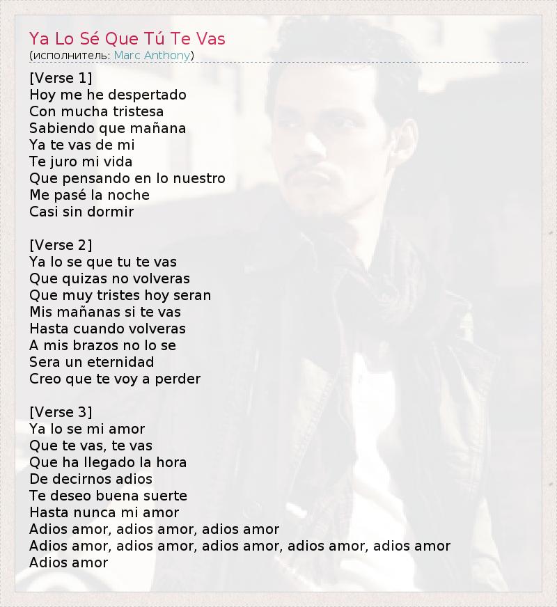 ГлавнаяИсполнителиMarc AnthonyYa Lo Sé Que Tú Te Vas