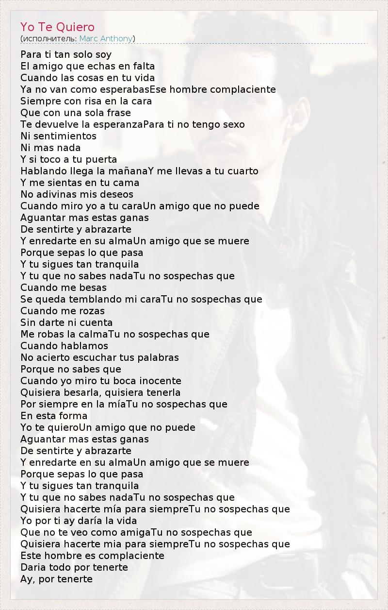 А как ты думаешь, о чем песня "Yo Te Quiero" ?