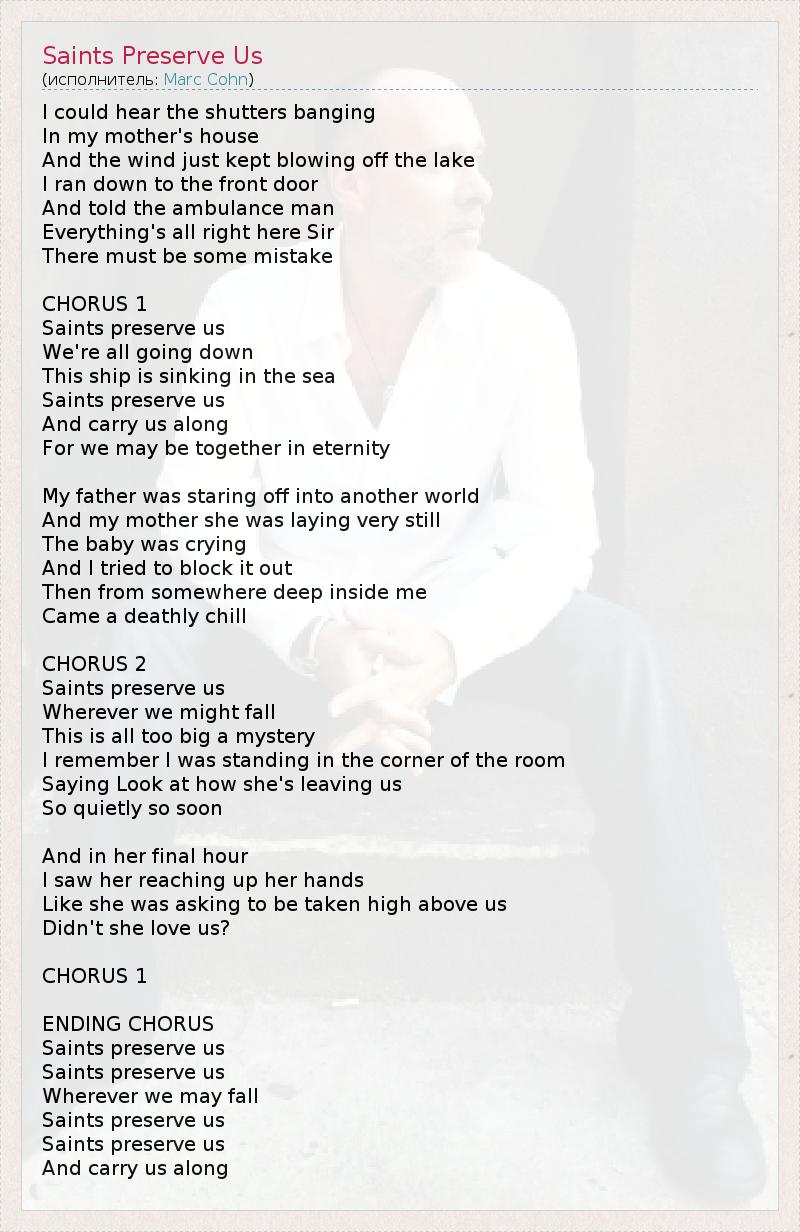 А как ты думаешь, о чем песня "Saints Preserve Us" ?