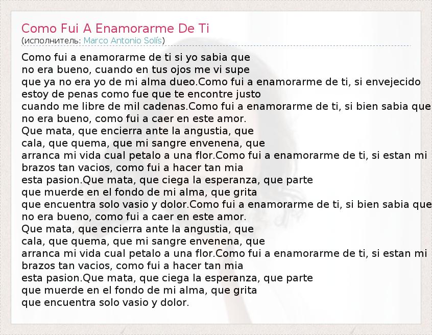 А как ты думаешь, о чем песня "Como Fui A Enamorarme De Ti" ?